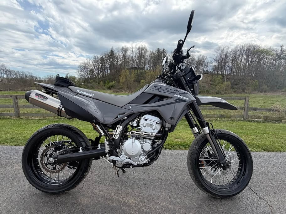 The KLX®300SM ultimate lightweight supermoto motorcycle is powered by a 292cc, fuel-injected, liquid-cooled engine. Experience a rewarding spread of power across the rev range. Smooth power delivery and crisp throttle response helps riders of all skill levels maneuver through stop-and-go city traffic, navigate country back roads, or experience the exhilaration of supermoto racing at their local track. Electric start offers easy starting; fuel injection helps with reliable starting in a wide range of conditions and contributes to excellent fuel economy.
